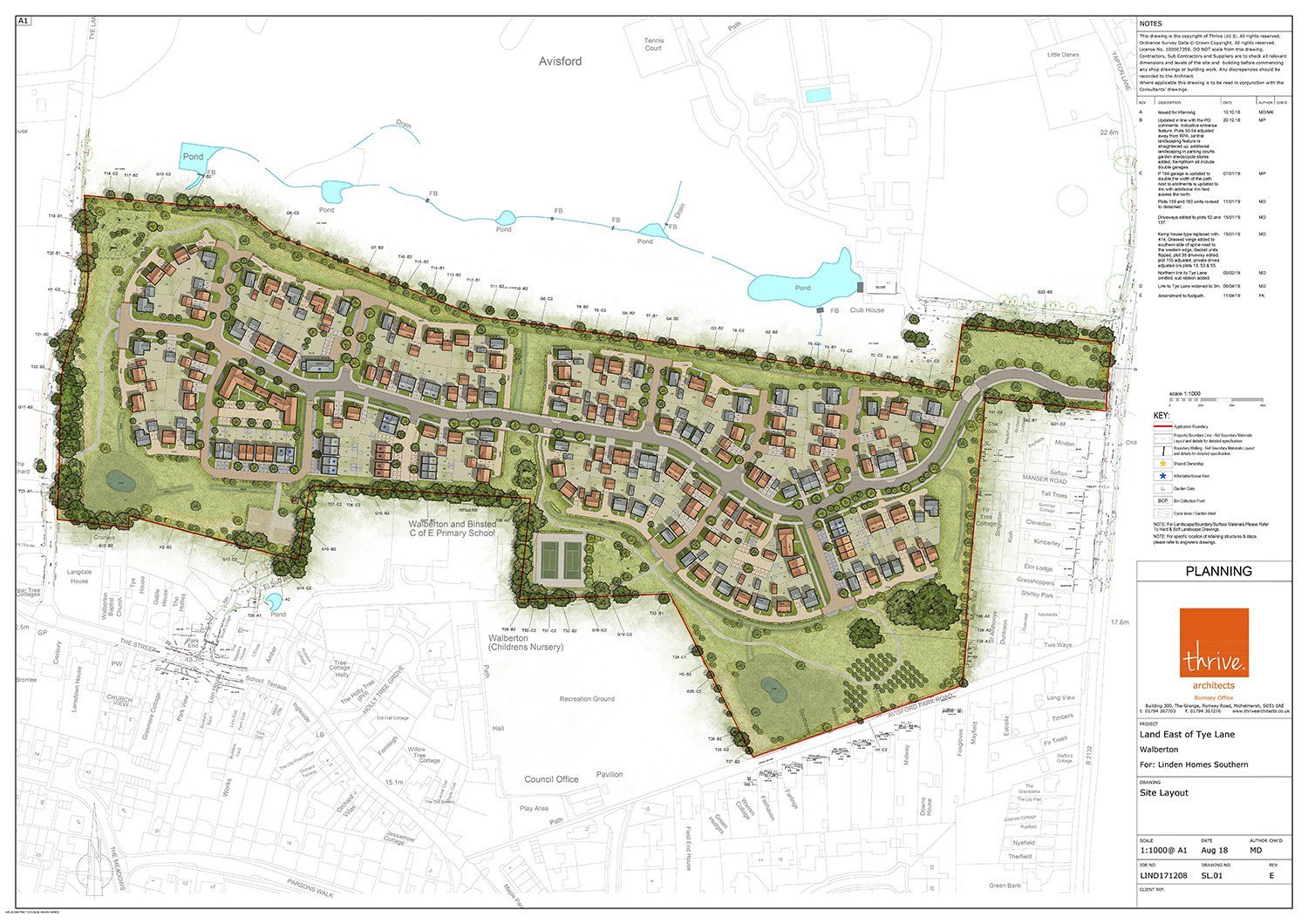 The site did not benefit from an allocation in either the Walberton Neighbourhood Plan or the Arun Local Plan. A planning application was submitted for 175 dwellings in 2017 and the application was heard by Planning Committee in March 2018, when it was unanimously approved. As a result, the Parish benefited from the upgrade of recreational facilities including some new tennis courts and the site provided 30% affordable housing.
